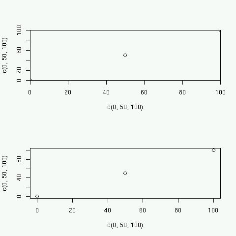 > plot(c(0, 50, 100), c(0, 50,100), xaxs = "i", yaxs = "i",