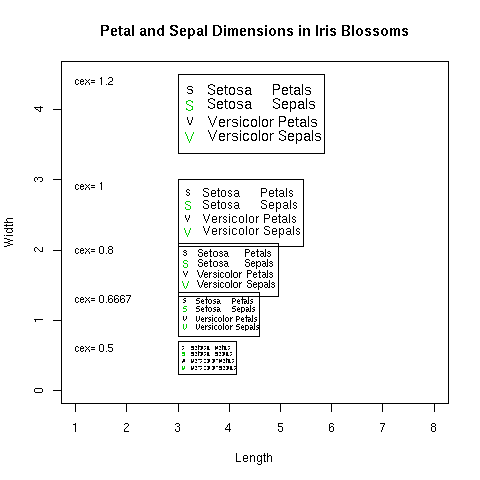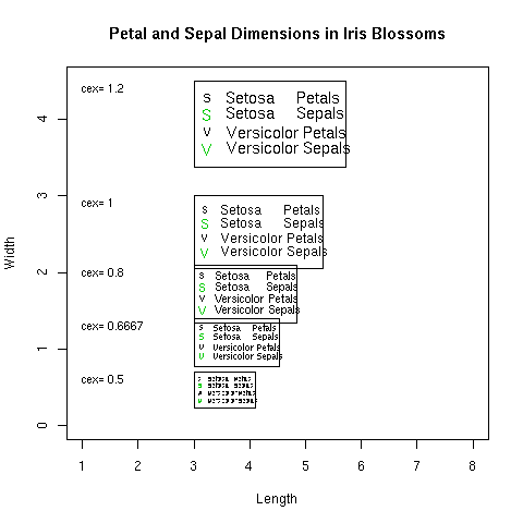 text (1, y.leg[i]-.1, paste("cex=",formatC(cexv[i])), cex=.8, adj = 0)