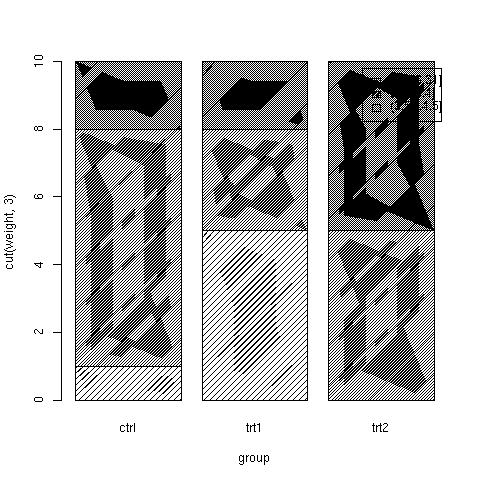 plot(cut(weight, 3) ~ group, data = PlantGrowth,