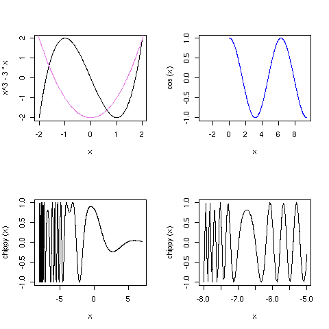 chippy <- function(x) sin(cos(x)*exp(-x/2)) # 複雑な関数を定義