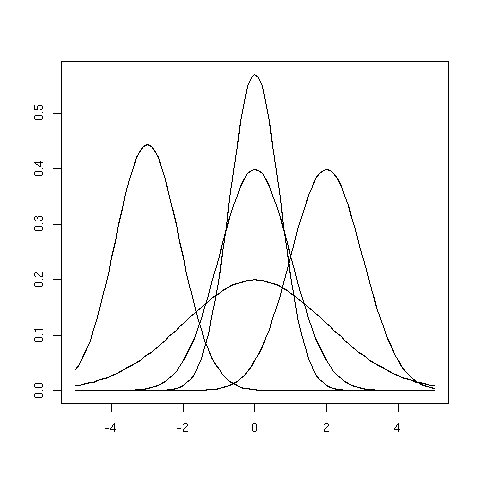 plot(normal4, -5, 5, xlim=c(-5,5), ylim=c(0,mh), xlab="", ylab="", main="")