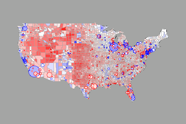グラフィックス参考実例集:maps パッケージによる2004年米国大統領選挙結果地図