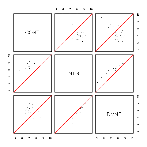 ds <- data.frame(scale(d)) # 標準化する lm(y ~ x1+x2+x5, d) lm(y ~ x1+x2+x5, ds) # 第二引数だけが違う # 厳密に言えば,後者のモデルの最後に -1 を付けておくのがいいのかもしれない前者は回帰係数,後者は標準化回帰係数が得られる(^_^) -- 青木繁伸 2004-11-26 (金) 19:20:51