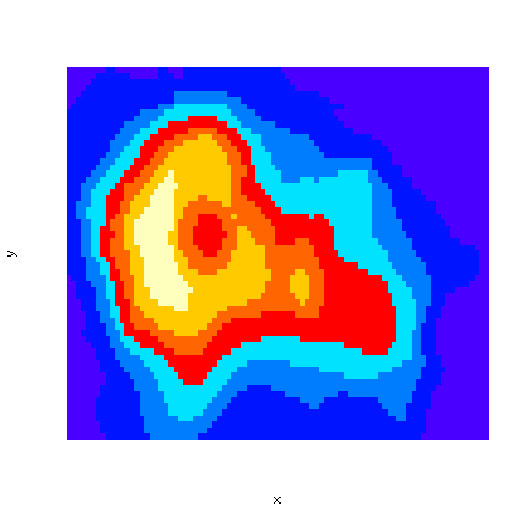 rainbow(n, s = 1, v = 1, start = 0, end = max(1,n - 1)/n, gamma = 1) heat.colors(n) terrain.colors(n) topo.colors(n) cm.colors(n)と同じように使えます。一般的には個人で配色を決めるよりはこうした慎重に選択された配色を使う方が賢いです。-- 2004-08-10 (火) 08:05:42
