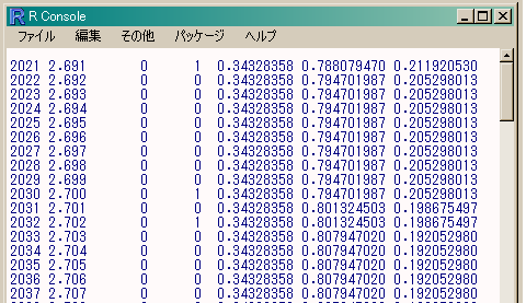 ans2 <- ans[,,1]/0.8+ans[,,2]/0.1 # 重み付けの合計