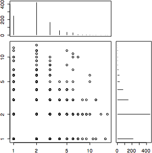 こちらのサイトの「初級Q&A アーカイブ(1) - 層別の相関値」や、下記のサイトを拝見して、任意の相関係数を持つ乱数列を生成する関数 gendat2() と、ポアソン分布への適合度検定関数 poissondist() を知りました。