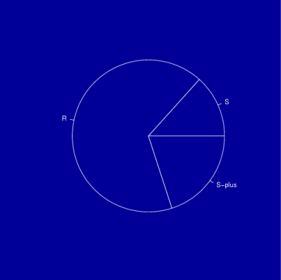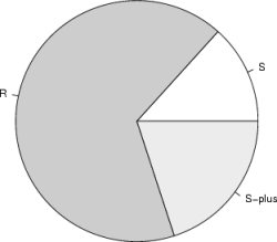 > pie(c(2,10,3),c("S","R","S-plus"))