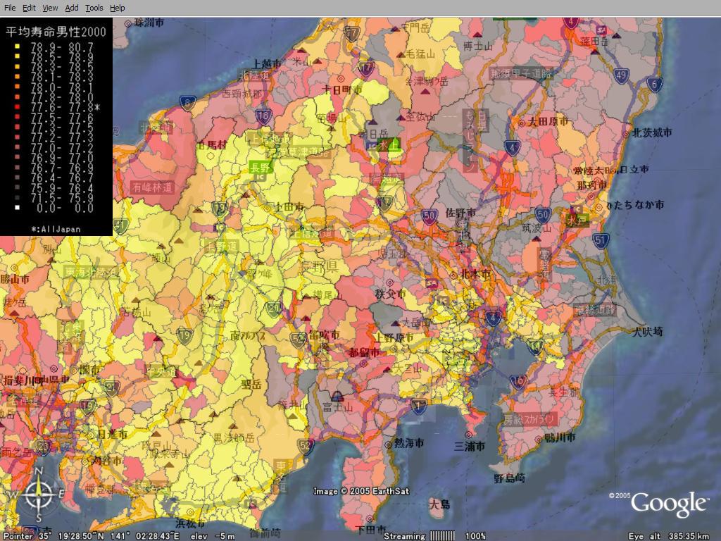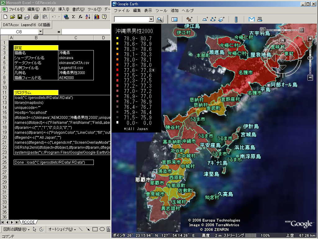 - 本日より2日間、沖縄で開催されている国際人間ドック学会において「統計解析環境RとGoogleEarthを用いた健康地図情報システム構築の試み」と題して当サイトでの成果を発表いたします。(1-7-24) お近くにいらしている方はぜひ聞きに来てください。 -- okinawa