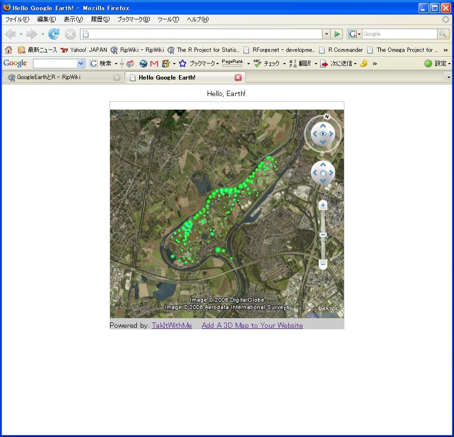 GUI部分をGoogleEarthにまかせて、バックエンド処理をRで行うと色々な場面で結構使えるのではないかと思いつきました。