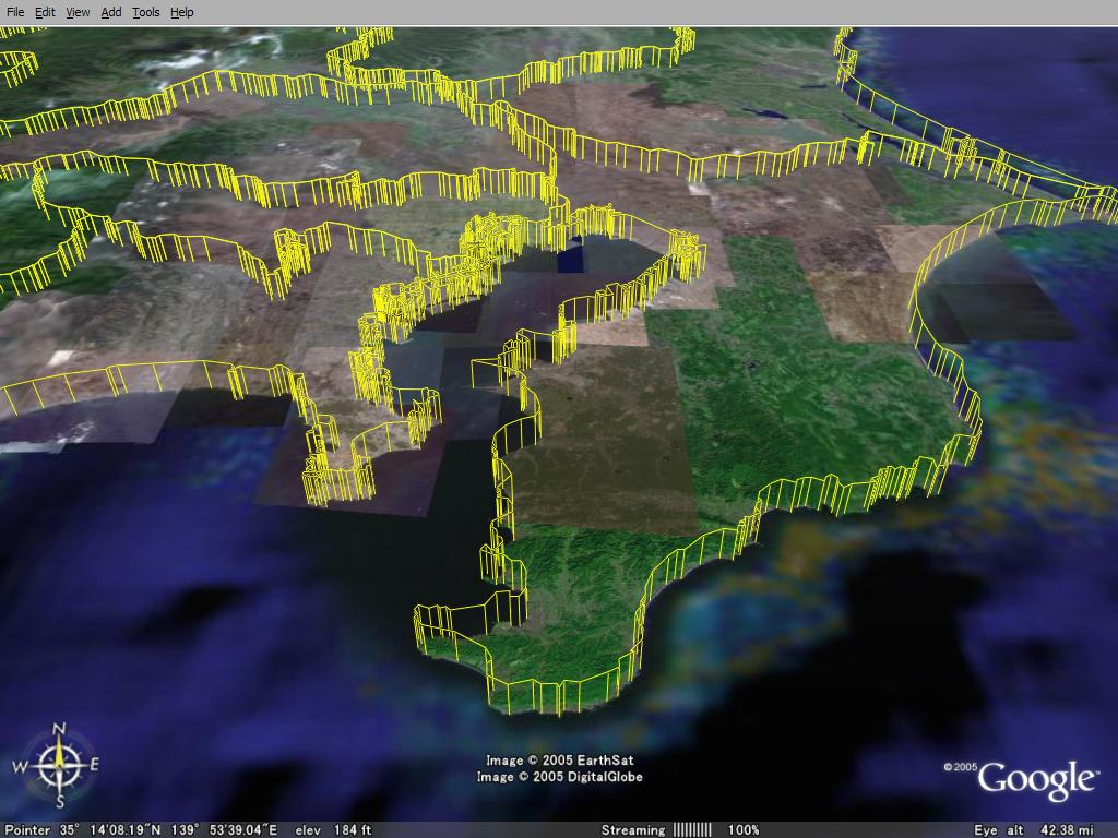 GoogleEarth [http://earth.google.com/]はGoogleが無料で公開している3D-GIS用のソフトです。現在、Windows版・Mac版・Linux版が公開されています。
