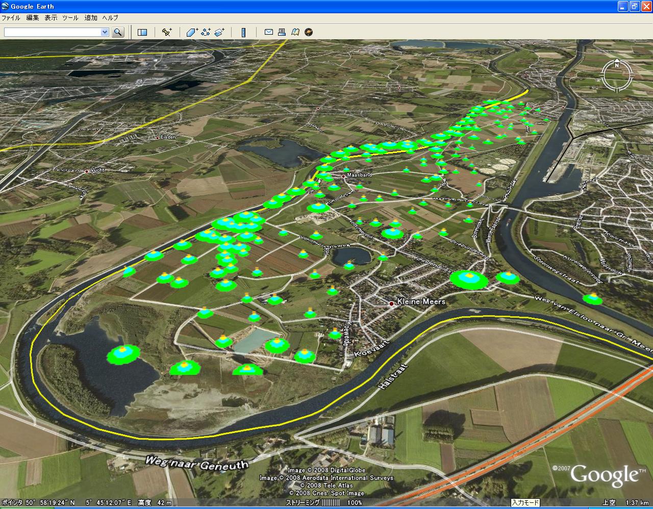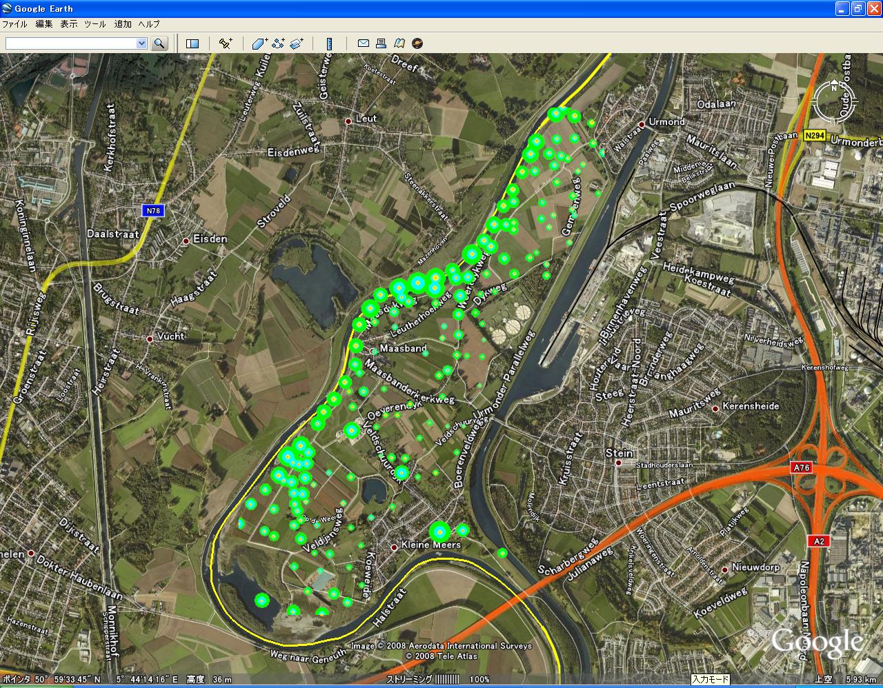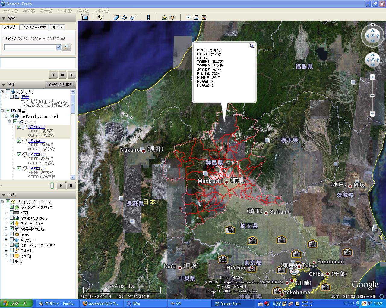 しかし、GUI部分をGoogleEarthにまかせて、バックエンド処理をRで行うと色々な場面で結構使えるのではないかと思いつきました。