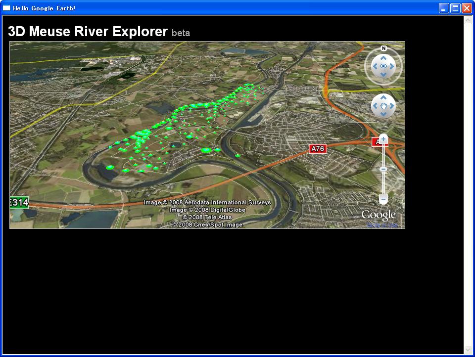 - GEManiacさんからの引用ですが、( http://www.googleearthairlines.com/ )にGoogleEarth Plugin for Internet Explorer が出ています。GEとIEを連動させるplug-inです。ここでも紹介しているKeyhole.Libをたたくものですが、ActiveX plug-inにしたところが味噌で、IEの画面上にGEの画面をオーバーレイして操作できるようにしています。これはすごいですねGEがweb plug-inのように使えてる。 -- okinawa