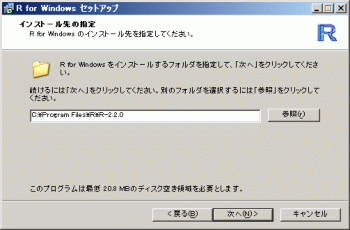 R-2.2.0 (Windows版)のインストール