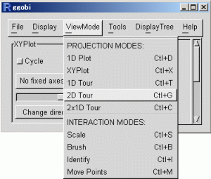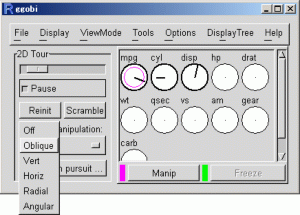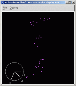 GGobiとは,ダイナミックな視覚化システム XGobi を Windows 上で使用可能にしたもので,R では Rggobi パッケージとして提供されている.2次元の散布図(scatterplot)や散布図行列(scatterplot matrices) などが表示でき,マウスでグリグリして遊ぶことが出来る.
