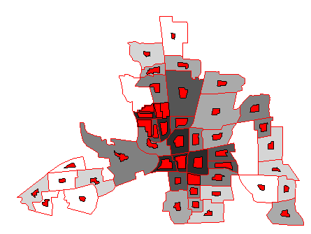 plot(columbus,f=gray(1 - classNo/breaks)) #地図を描く