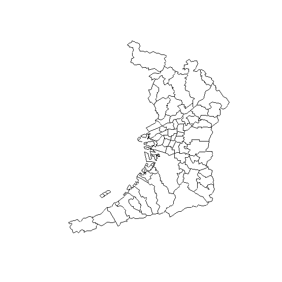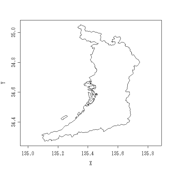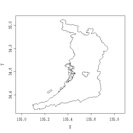 library(gpclib) osaka<-jpn[jpn$PREF == "大阪府"] plot(osaka)