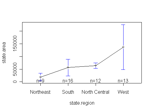 元ネタ StatsRUs http://gifi.stat.ucla.edu/R/doc/statsRus.html 5.9 Plot with error bars (11/08/2000 Paul Johnson <pauljohn@ukans.edu>)