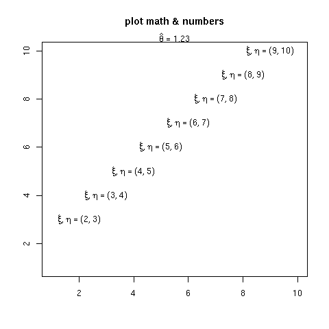 plot(1:10, type="n", xlab="", ylab="", main = "plot math & numbers")