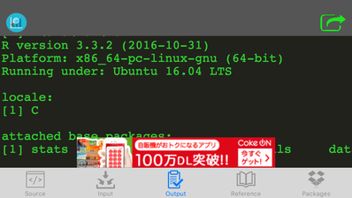 無償アプリなので広告が入る。 Rのバージョンは3.3.2 (2016年12月15日現在)