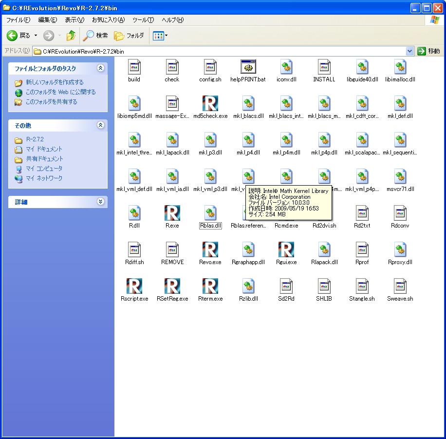 - Revolution Rの中のRblas.dllとMKLのdllをそっくり入れればR2.9.0でも動きますね。ところでGotoblasでsvd()を使うと落ちるのは私だけ? --