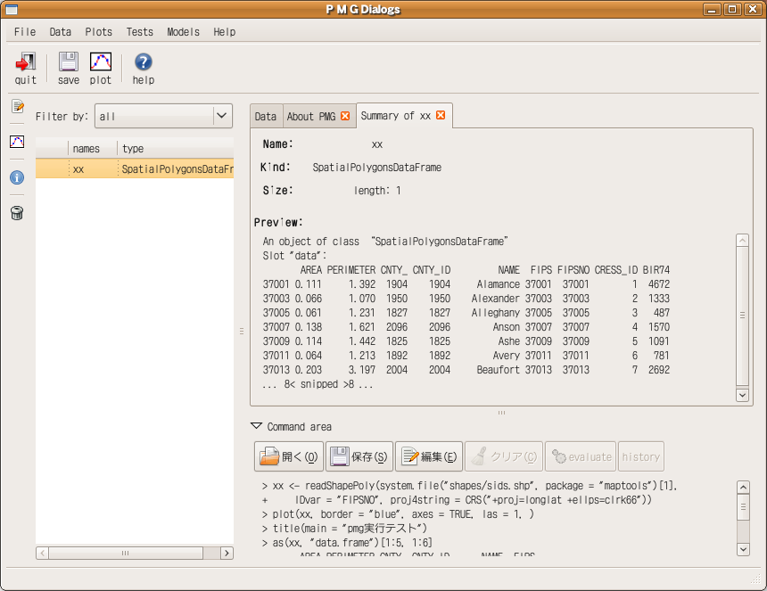 pmg (Poor mans GUI)とはシンプルなRのグラフィックなインターフェイス。RGtk2をベースに作成されている。