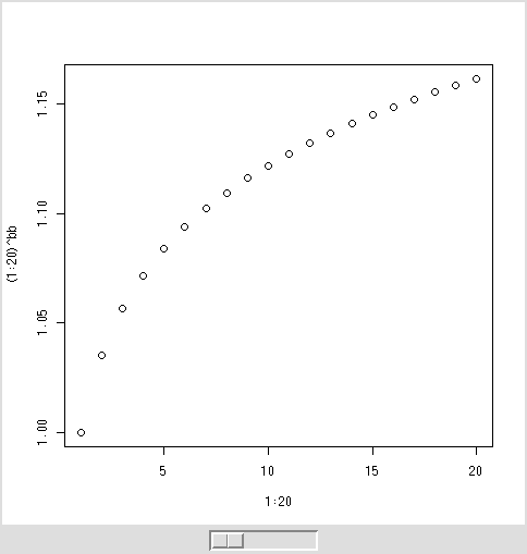 img <- tkrplot(tt, function() plot(1:20,(1:20)^bb))