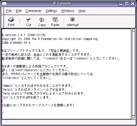 私が代表で応募中の第二回Rユーザー会(正式名は共同研究集会?)の申請が認められたと今日統計数理研究所から連絡がありました。というわけで、よろしくご協力ください。出し物等ご要望があれば、この場なり、わたし宛にお寄せください。なお、今年の5月ごろにもう一つRに関係する催し物(Rプロパーではありません)の予定があるとさる筋から極秘情報がありました。はっきりしましたら、またご紹介します。