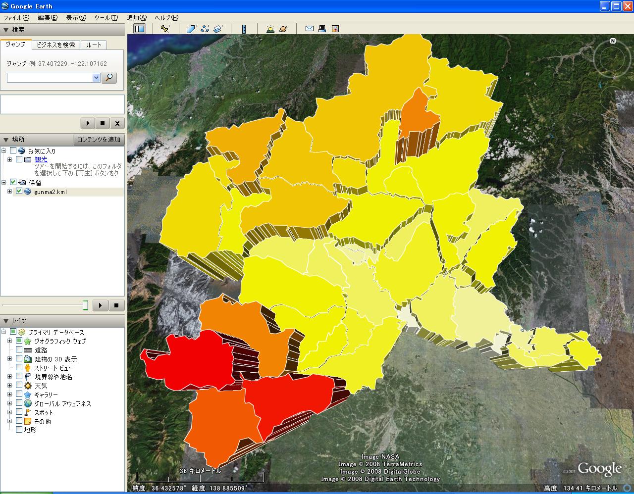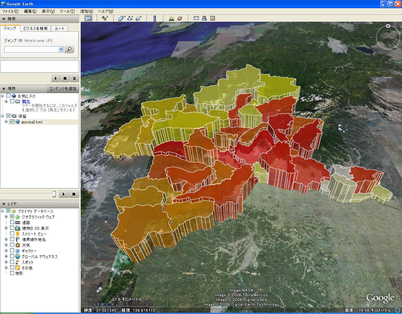 saveXML(x,"c:/gunma2.kml",prefix = '<?xml version="1.0" encoding="UTF-8"?>\n')#ファイルに出力