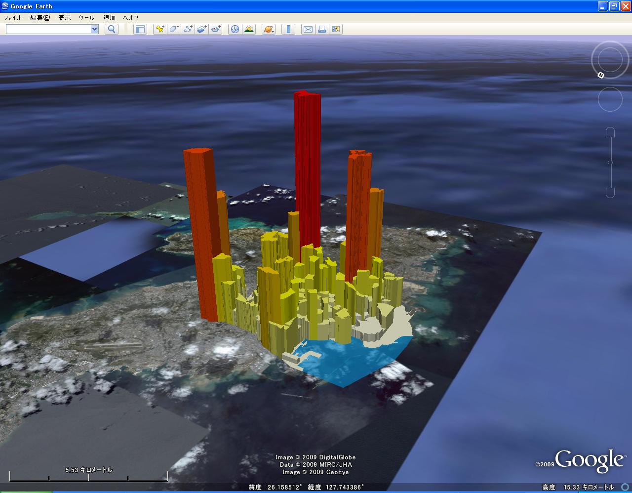 作成したkmlとShapeFileに付属しているdbfを使って3Dグラフを作成します。